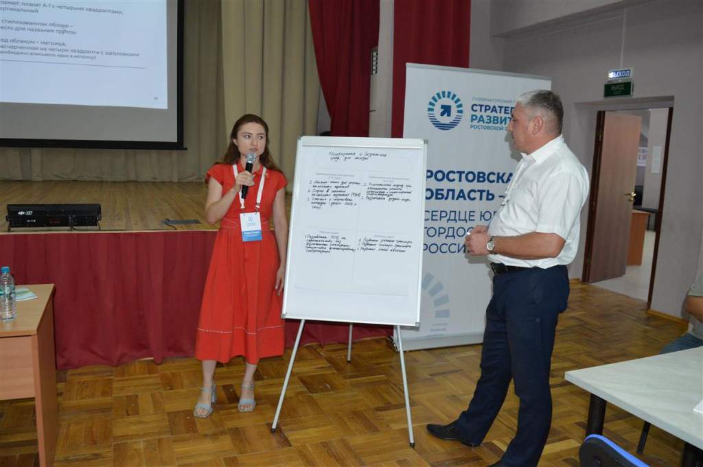 Работа стратегической сессии проходила в два этапа. Участники мероприятия разделились на семь групп, у каждой была своя актуальная тема, отражающая одно из направлений стратегии. В ходе первого этапа из текущего варианта стратегии участники выбрали те инициативы, которые, по их мнению, следует сохранить. Среди них – обеспечение здравоохранения квалифицированными кадрами, поддержка многодетных и молодых семей, реабилитация и адаптация участников СВО, развитие системы добровольной сертификации «Сделано на Дону», модернизация и реконструкция существующих очистных сооружений, ливневых канализаций и др.