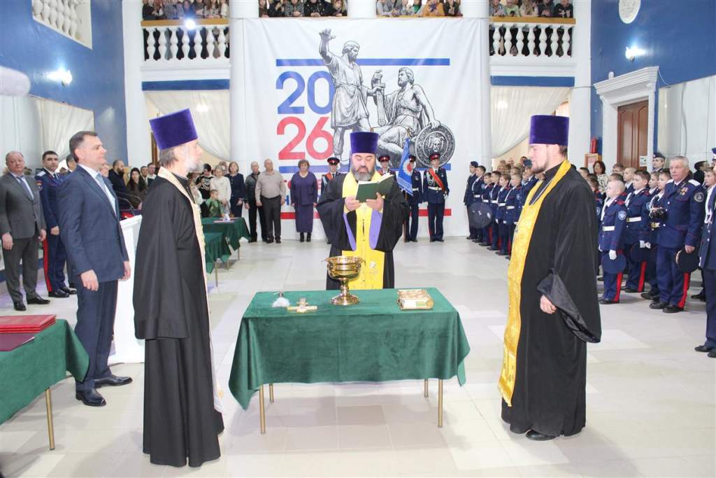 В Белой Калитве состоялась торжественная церемония принятия Кодекса чести кадетами казачьего корпуса имени Матвея Платова. В мероприятии принял участие губернатор Ростовской области Юрий Слюсарь.