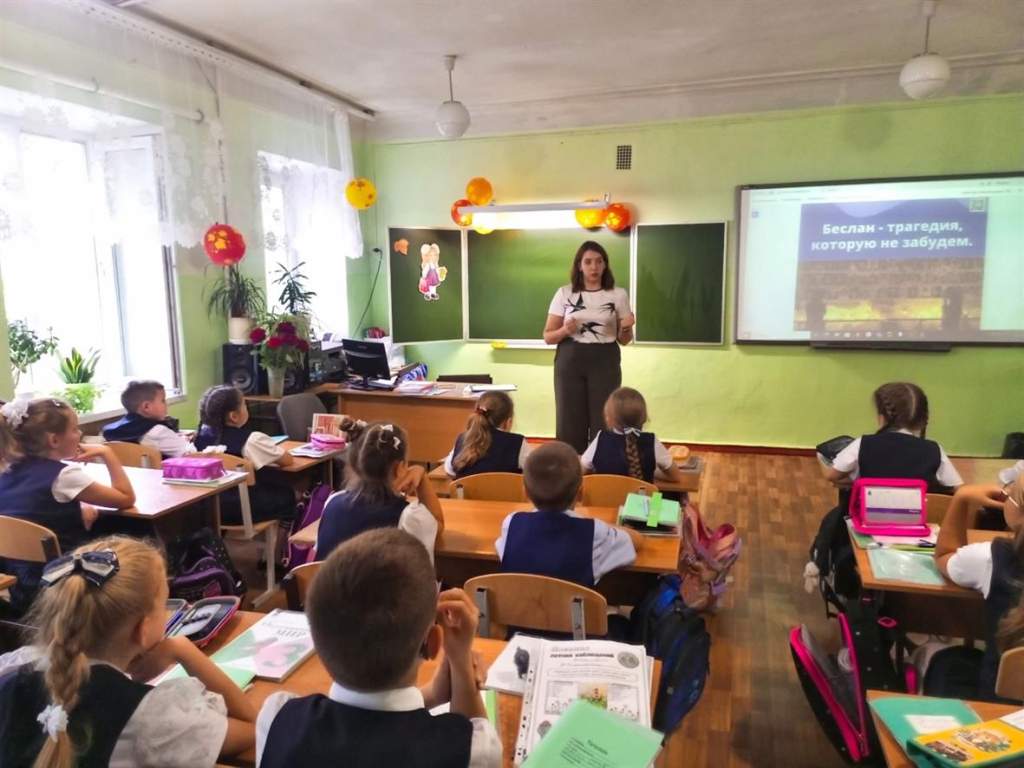Заведующая библиотекой М. С. Власова рассказала ребятам, что 1 сентября 2004 года в России произошло трагическое событие в городе Беслан (Северная Осетия). Во время праздника террористы захватили школу, и несколько дней удерживали в заложниках детей, учителей и родителей. В результате штурма, проведенного спецслужбами, многие люди были спасены, однако не обошлось без жертв. Теперь Беслан — это боль, которая навсегда останется в сердцах людей, и память, которую мы должны сохранить для будущих поколений, чтобы трагедия не повторилась.