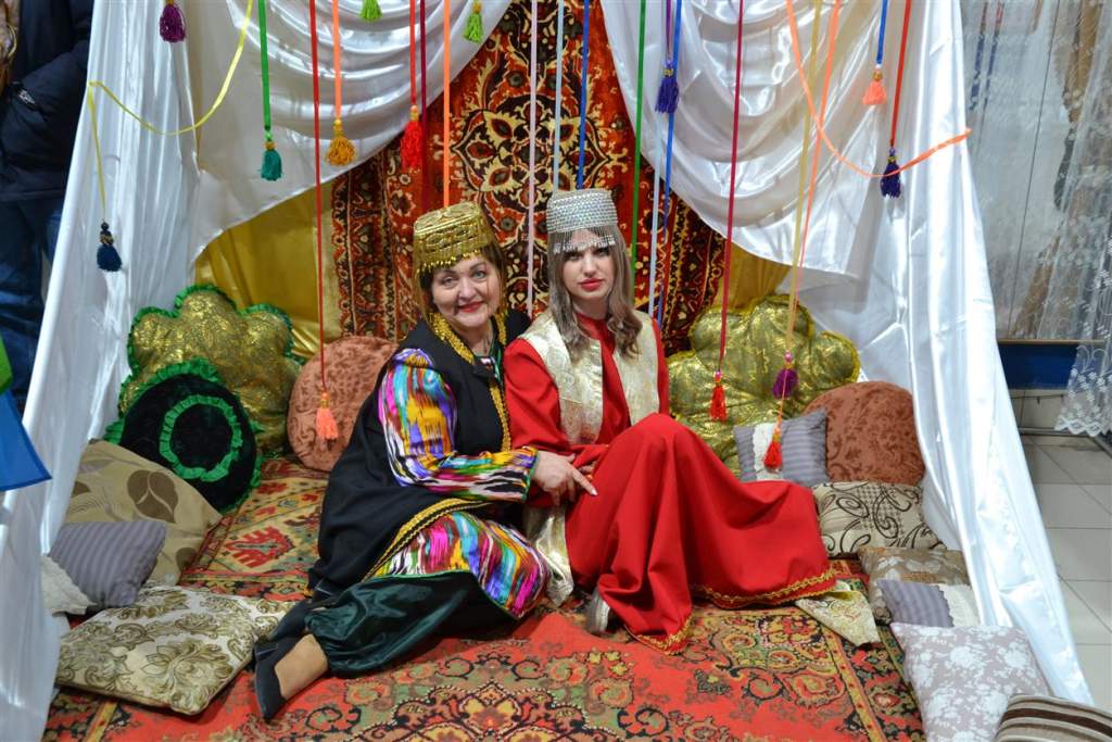 В зеркальном зале Дворца культуры были размещены яркие уголки национального быта, подготовленные клубными системами поселений нашего района.