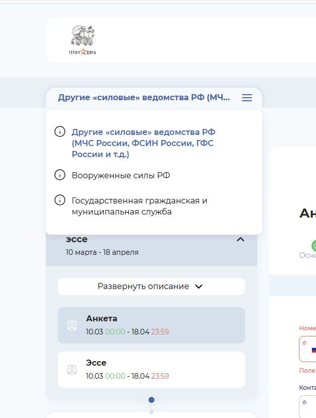 1. Требования к кандидатам для участия в проекте «Герои Дона»
