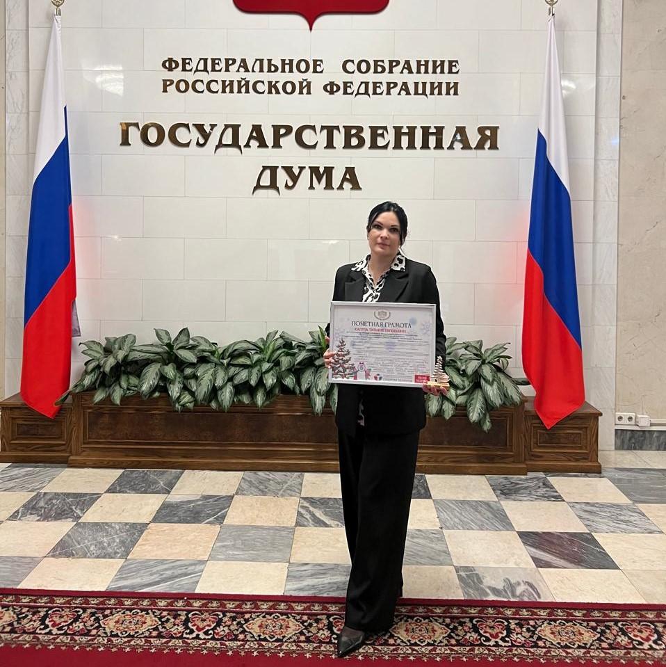 За пятилетнюю организацию и проведение Международного фестиваля новогодних елок директор Сосновской школы Татьяна Капуза была награждена Почетной грамотой и памятной статуэткой.