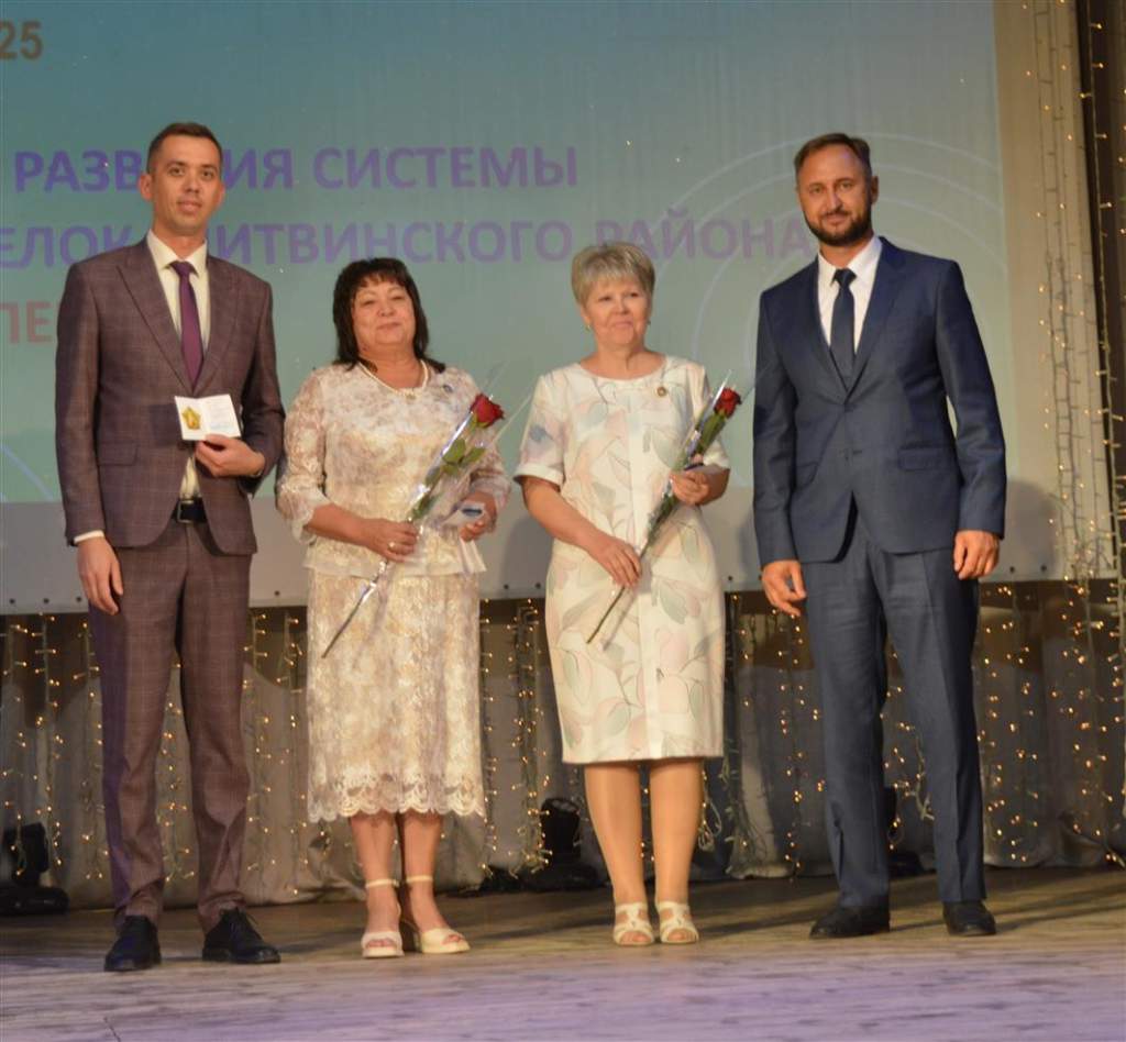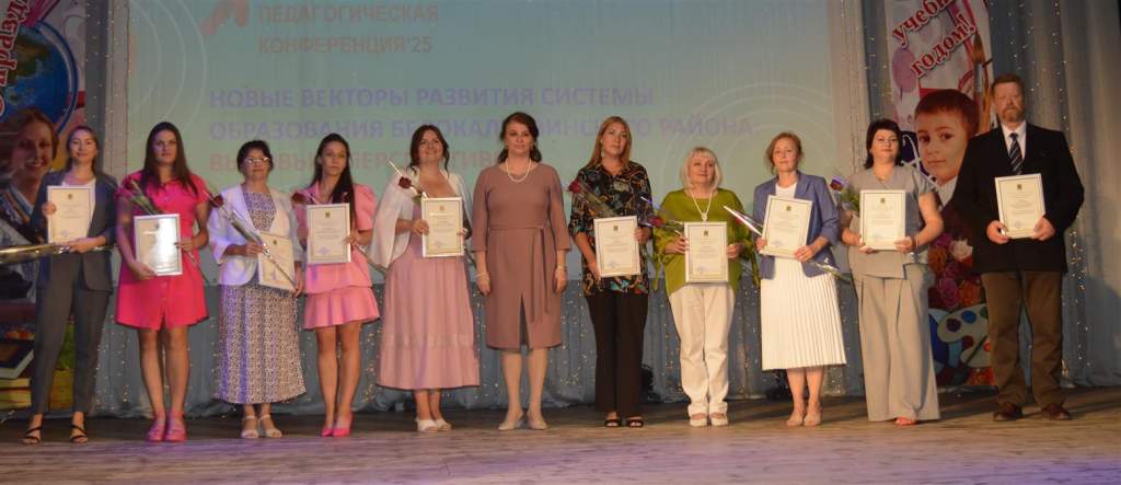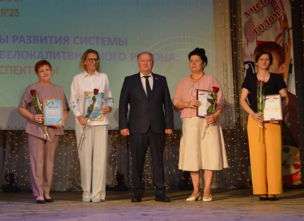 Конечно, самым ярким моментом педагогической конференции стало чествование педагогов, которые были отмечены за многолетний добросовестный труд, педагогический талант и неоценимый вклад в развитие системы образования Ростовской области. Молодым учителям, которые только приступят к работе, есть с кого брать пример и у кого учиться. Так, почетного звания «Почетный работник сферы образования Российской Федерации» удостоены: учитель начальных классов школы №3 И.М. Васильева, заместитель директора по УВР школы №8 О.В. Выпряжкина, учитель русского языка и литературы школы №5 Н.А. Минаева, учитель информатики школы №11 Ж.В. Пратасова, заместитель директора по УВР школы №12 Н.А. Найданова, учитель физкультуры школы №17 С.С. Гришанова, учитель математики Ленинской школы Л.И. Попова, учитель начальных классов Насонтовской школы Е.В. Пуличева. Нагрудный знак «За верность профессии» получили воспитатель детского сада №7 «Солнышко» С.М. Аксенова и учитель начальных классов Краснодонецкой школы Т.В. Лавская. Нагрудным знаком «Наставнику Героя» награжден заместитель начальника отдела образования администрации района С.А. Плынчев. Дипломом лауреата премии губернатора Ростовской области награждены победители областного конкурса «За успехи в воспитании» — педагог дополнительного образования Дома детского творчества Г.Т. Аракчеева и заместитель директора по воспитательной работе школы №10 Г.М. Леонова.