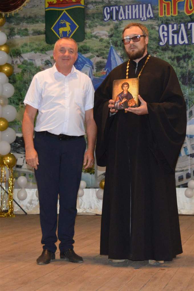 Символичным и особо значимым стал момент, когда глава местной администрации Виктор Убийко преподнес в дар икону великомученика и целителя Пантелеимона настоятелю храма иерею Михаилу Чикризову.