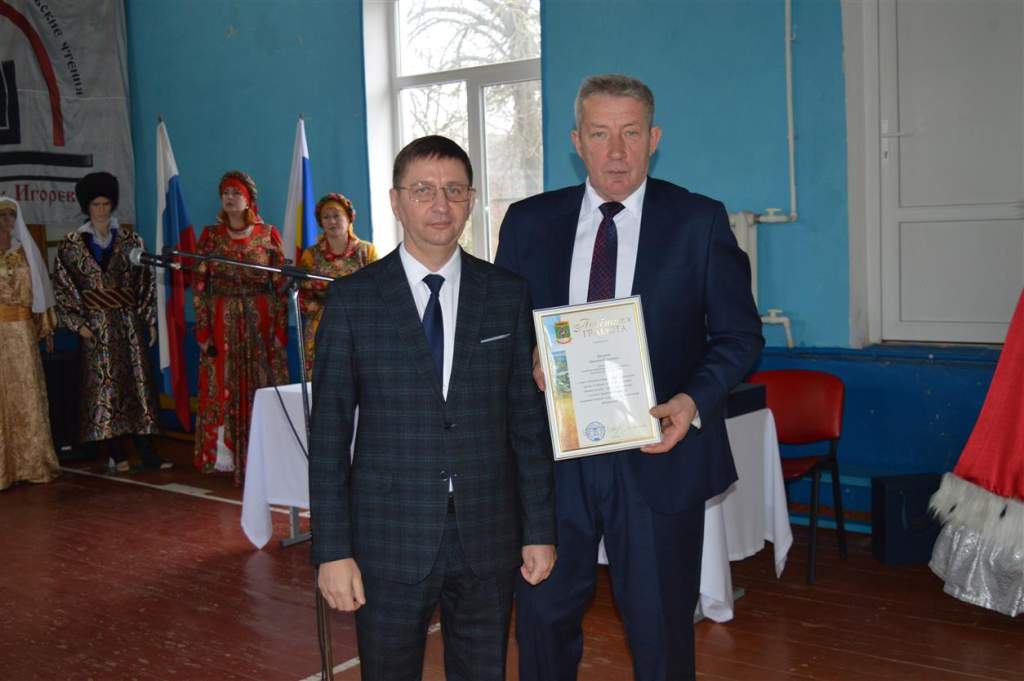 На торжественном собрании Дмитрий Сивак отметил, что победа в таком конкурсе – это высшая оценка деятельности КТОСа хутора Погорелова, итог большой и плодотворной работы. Заместитель главы администрации района Сергей Севостьянов вручил Почетную грамоту председателю КТОСа Василию Лукьянову. Благодарностью главы администрации Белокалитвинского района награждены директор городской школы №2 Марианна Владимирова, член актива проекта «Игорево поле» Елена Доронина, координатор и волонтер проекта Марина Помазкова. Благодарственными письмами поощрены председатель РОО ЗПП «Правозащитник» Николай Безуглов, члены КТОС хутора Погорелова Ирина Краснянская и Ольга Чертова.