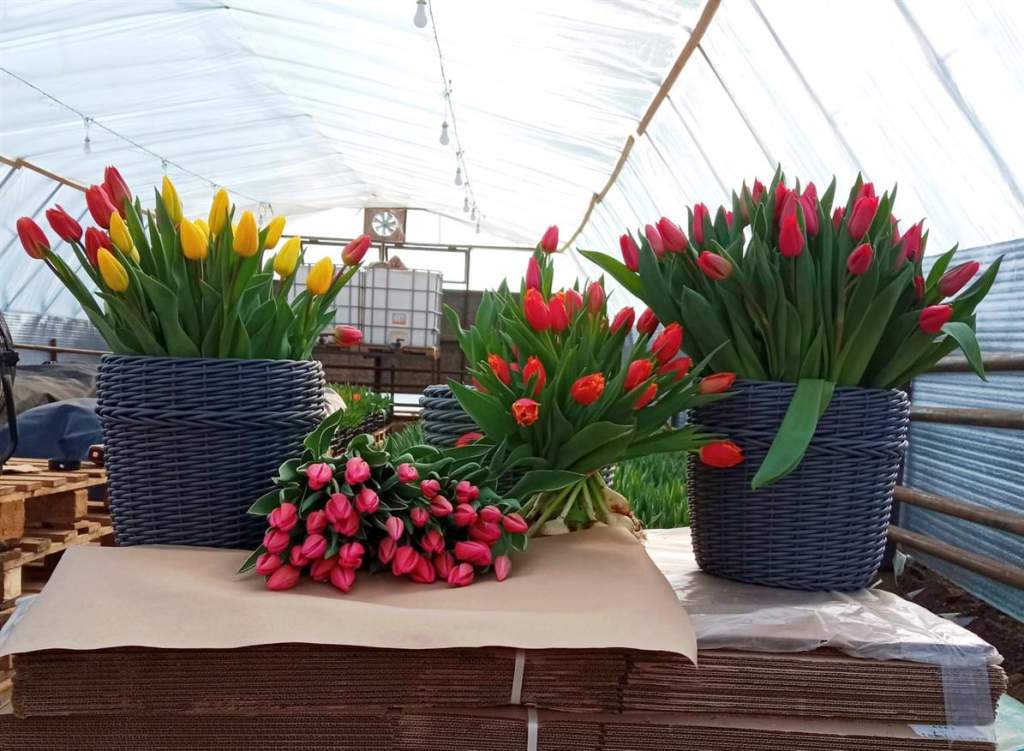 Мы беседовали с Петром в самое горячее время. В теплице все Фетисовы дружно собирали тюльпаны и формировали букеты. Глава семьи и бизнеса поздравил всех женщин города и района с наступающим Международным женским днем: