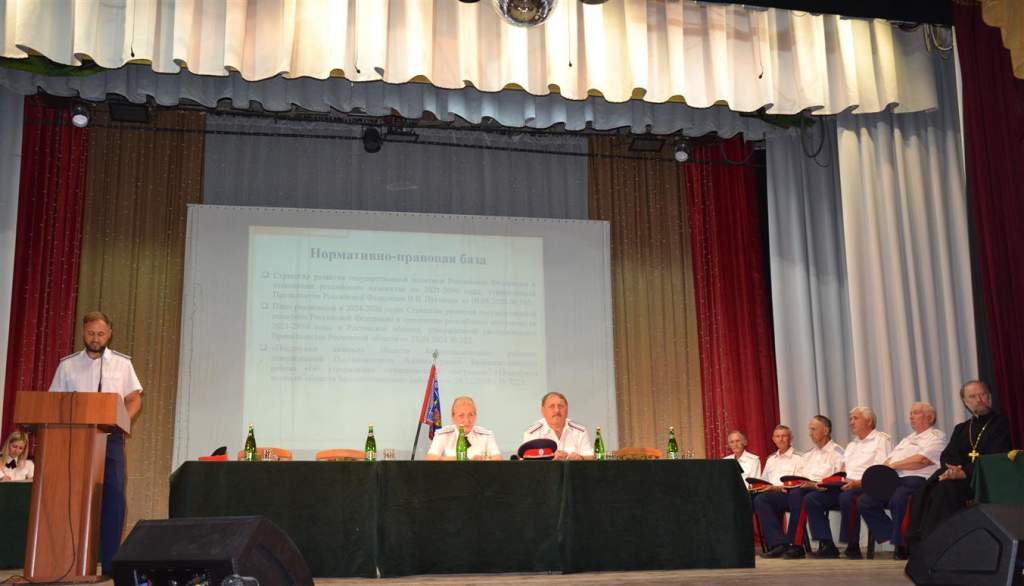 — На территории района, — начал свой доклад Николай Анатольевич, — насчитывается 12 казачьих обществ: одно юртовое казачье общество «Усть-Белокалитвинский казачий юрт»; одно городское — «Станица Усть-Белокалитвинская» и десять хуторских. В реестре Усть-Белокалитвинского казачьего юрта числится 425 реестровых казаков. Органами управления юртового казачьего общества являются: Большой круг, совет атаманов и юртовой атаман.